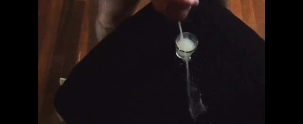 Hot hung shooting cum in a glass